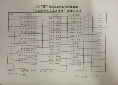 添加时间:2022-11-152022年11月12日-13日,厦门市职业技能大赛在厦门软件职业技术学院、厦门城市职业学院、厦门华天涉外职业技术学院举行。