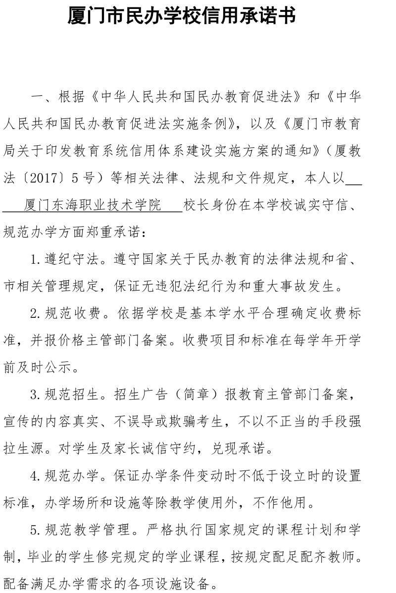厦门市民办学校信用承诺书