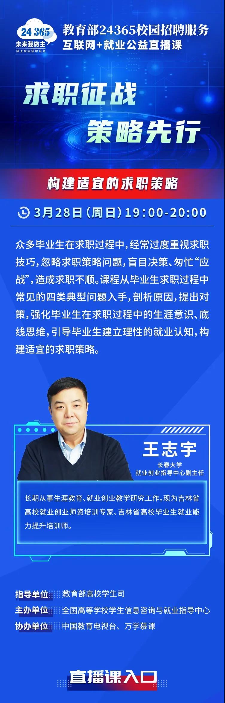 课程预告 | 教育部24365就业公益直播课:求职征战 策略先行——构建适宜的求职策略