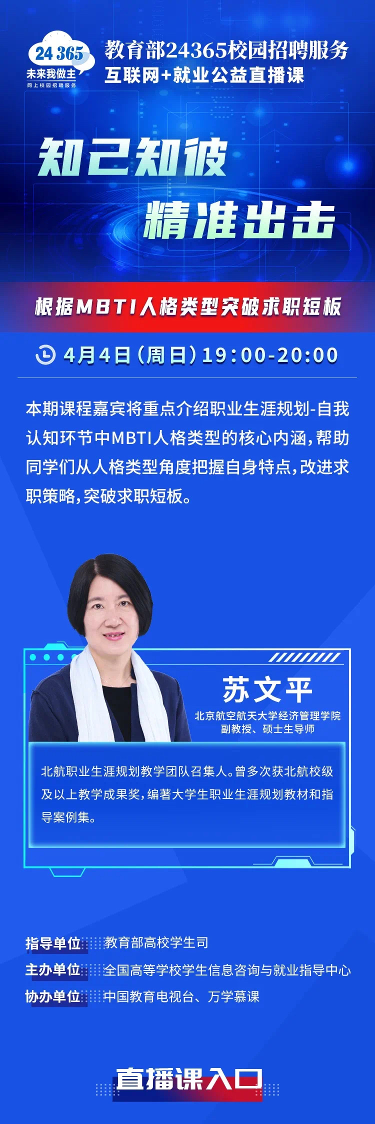 课程预告 | 教育部24365就业公益直播课:知己知彼 精准出击——根据MBTI人格类型突破求职短板