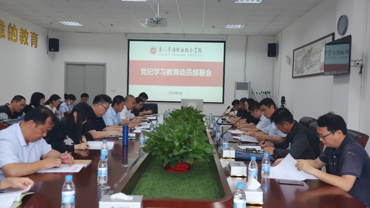 近日,根据市委教育工委关于深入开展党纪学习教育的总体部署,新葡的京官网党委组织召开党纪学习教育动员部署会。市委教育工委选派的党纪学习教育挂钩联系人吕华亭处长(市教育局财务处)、学校党政班子成员和各基层党团组织班子成员出席部署会。