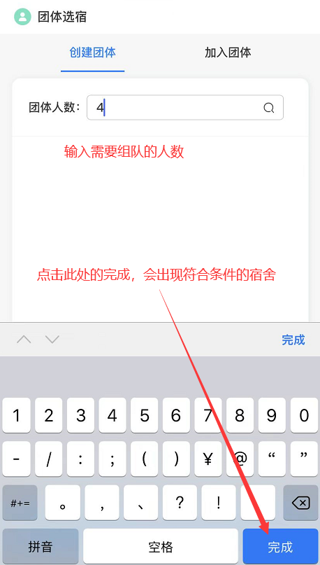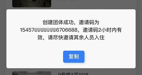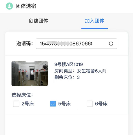 第二步:受邀请同学,选择加入团体-输入邀请码,完成床位选择即可。