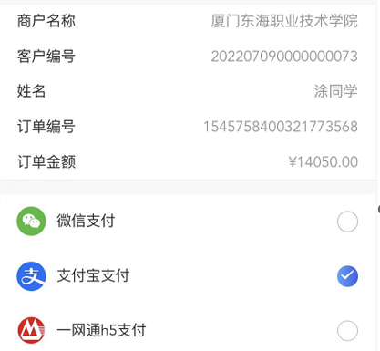 (3)线上缴费平台支持微信、支付宝、银行卡进行缴费,由于微信平台限制,如需使用支付宝缴费请按以下提示操作。
