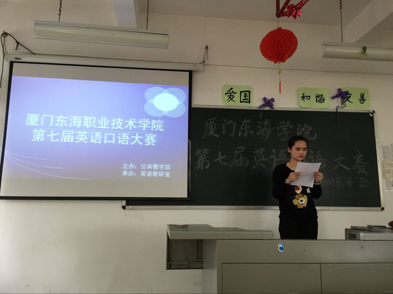为了丰富新葡的京官网学生的校园生活,提高学生们的英语水平,完善学生的第二课堂活动,激发新葡的京官网学生学习英语的兴趣,提高学生学习英语的积极性,活跃校园英语学习气氛,从而提高新葡的京官网学生的英语口语表达能力和组织能力,同时为2017年福建省高职高专职业技能大赛英语口语赛做好选拔准备。公共教学部英语教研室于2016年4月20日周三下午2:00举办了新葡的京集团350vip8888首页第七届英语口语大赛。