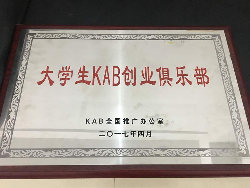 新葡的京官网荣获大学生KAB创业俱乐部荣誉牌匾