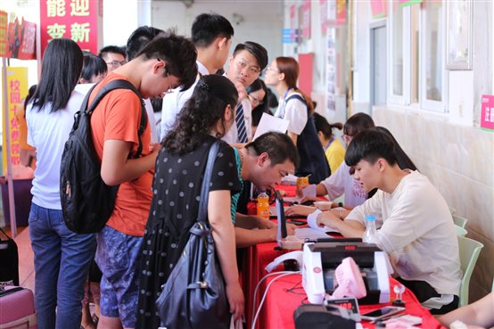 热情周到,便捷高效永远是每年迎新的主旋律。人来人往的迎新点,迎新工作如火如荼,到处都是忙碌的身影,不断前来报到的新生在志愿者们热情的引导和各专业学长学姐的悉心陪同下,顺利完成报到手续的办理。学校师生亲切的待人态度和高效的办事效率,很快与新生及家长建立了良好的互动,让舟车劳顿的新生及家长倍感温馨。