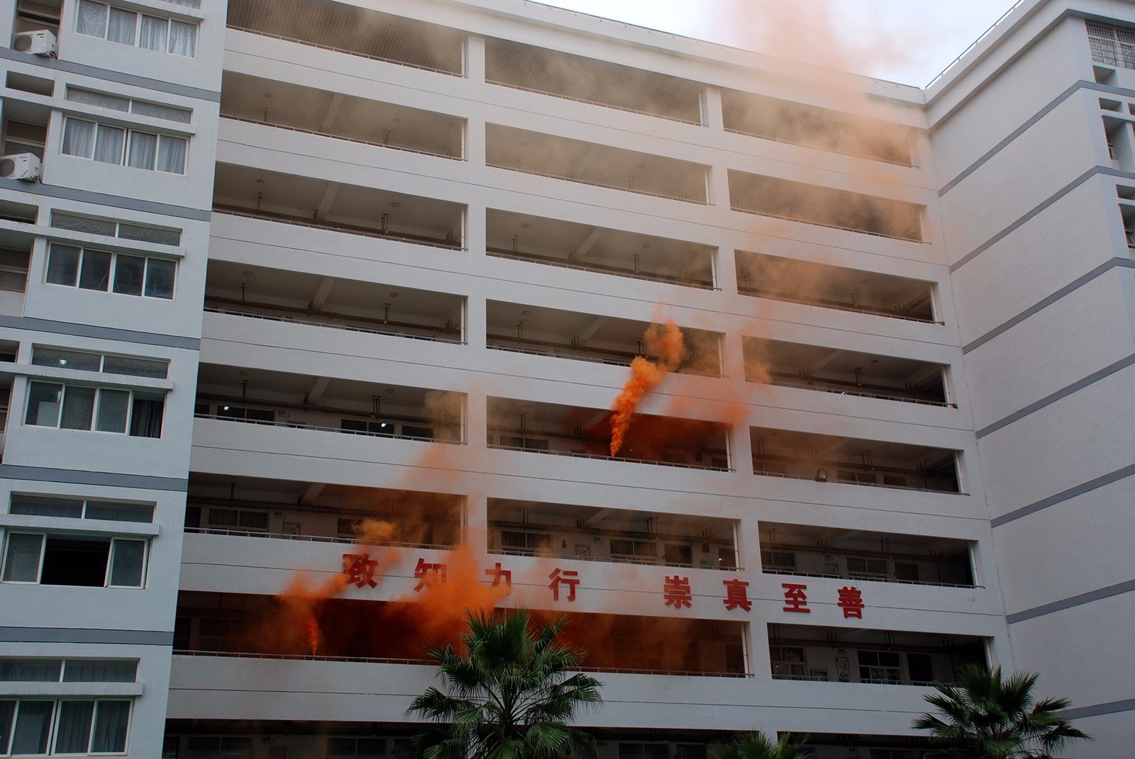 下午3点整,随着防空警报响起,全校师生在疏散引导人员的指挥下,按照安全逃生路线,有序离开教室和公寓,紧急撤离到安全地点,整个过程紧张有序。