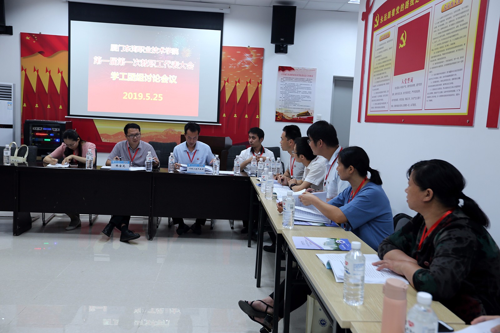 随后,在庄严的国歌声中,教代会正式会议胜利拉开帷幕。大会上,全体与会代表听取并审议了校长工作报告、工会工作报告、财务工作报告、提案征集和审查情况报告等材料,并按照行政团组、教学团组、学工团组三个分会场展开分团组讨论,分别就各项报告、学校章程、学校教代会章程、人力资源管理规定(试行)等文件材料进行审议、探讨。各分会场的代表团报告相关提案的征集情况,并进行展开讨论。大家对事关学校建设发展和教职工切身利益的一系列事项展开热烈的讨论,代表团的代表们集思广益、出谋划策,体现出齐心协力,共谋发展的责任感和使命感。