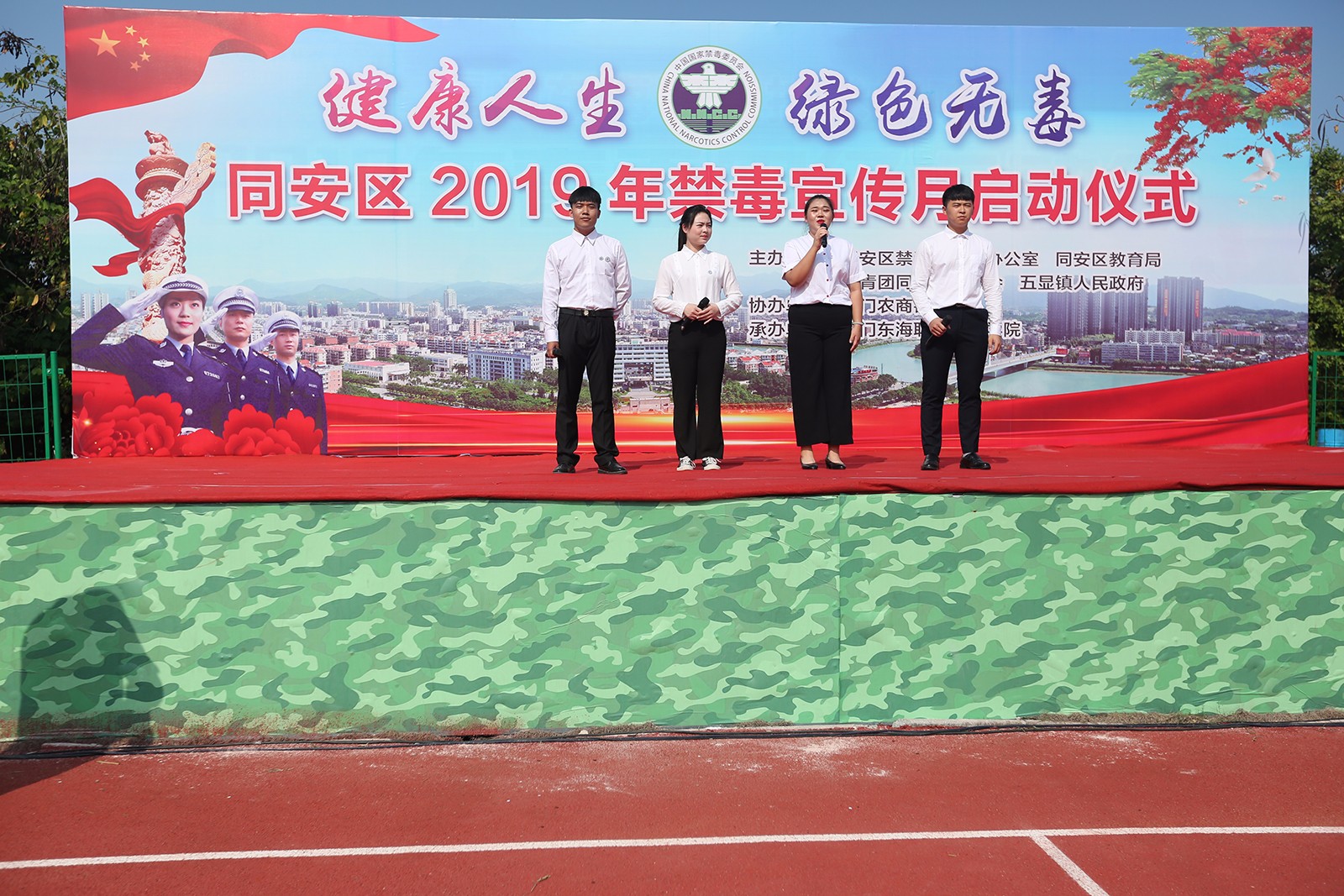 5月31日下午,由同安区禁毒委员会办公室、同安区教育局、共青团同安区委员会和五显镇政府联合主办,新葡的京集团350vip8888首页承办的“健康人生·绿色无毒”——同安区2019年禁毒宣传月启动仪式在新葡的京官网举行。厦门市禁毒办领导、同安区禁毒委员会各成员单位领导、同安区教育系统教师代表、五显镇部分干部、街道社区社工代表和新葡的京官网师生共1300余人参加了启动仪式。