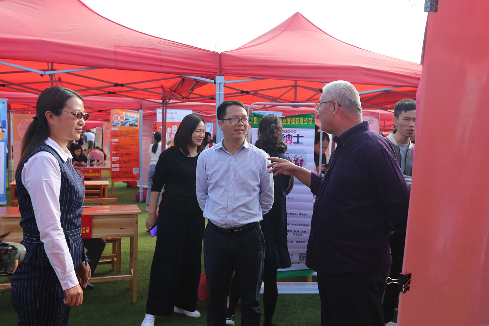 招聘会期间,厦门市同安区人力资源和社会保障局曾志刚调研员、同安区劳动就业中心主任杨丽秋、副主任叶荣杰,厦门人才服务中心人力资源市场部陈玮、王昕阳莅临学校指导工作。校长来永宝、学校党委书记陈前、副校长林金龙亲临招聘会现场指导,与学生亲切交流,了解学生求职意向,解答疑惑,与用人单位积极沟通,了解岗位需求和服务满意度。学生处及相关职能部门领导、各二级学院院长、院长助理、专业教师、辅导员也到会场与用人单位见面,指导毕业生求职择业。