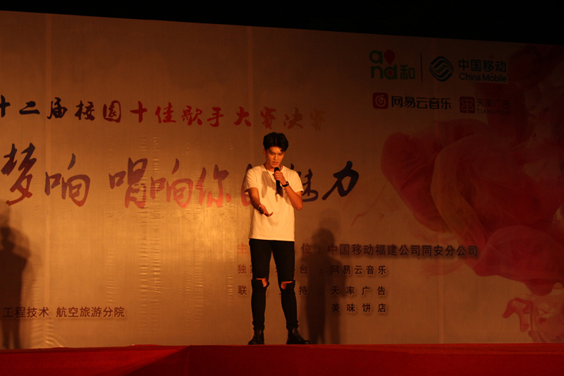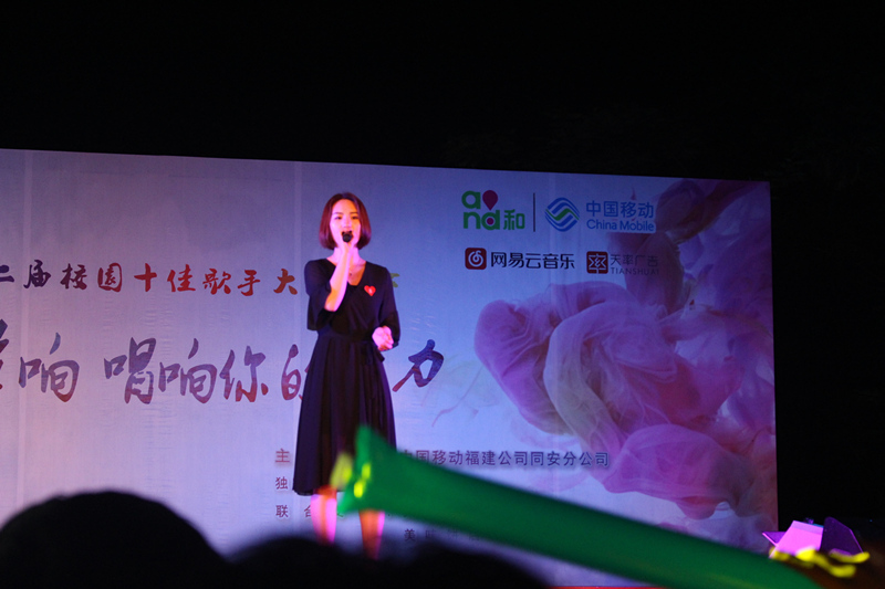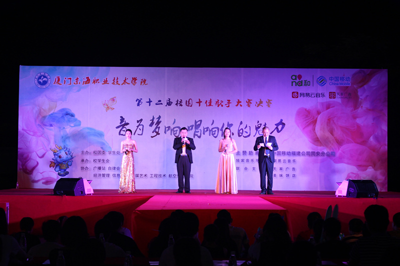 5月24日晚19点30分,由校团委学生处主办、校学生会承办的 “音为梦响 唱响你的魅力”第十二届校园十佳歌手赛总决赛在中庭广场举行。五显镇政府宣传委员柯淑娴、文化中心王春晖主任、同安移动公司副总经理庞丽萍、同安移动公司高校区域总监蒋泠泠、同安移动公司高校区域副总监王瑞玉、校党委委员、校长助理崔筱力老师、校党委委员、学生处处长包海江、学生处副处长兼团委书记陈朝老师莅临此次比赛现场。各团委委员及各团总支书记出席担任此次比赛的评委。