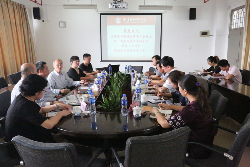 10月19日上午,全国政协港澳台侨委员会副主任、国务院侨办原副主任赵阳、中国华文教育基金会项目二部主任李晓梅一行领导莅临新葡的京官网视察指导工作。集团董事长吴泉水、副总裁林海洋、行政人力部总经理陈贞臻及新葡的京官网校长朱国辉、党委书记黄平南、副校长梁少华、副校长宋艳春、校长助理崔筱力等高管陪同来宾参观校园,并组织召开座谈会。会议由吴泉水董事长主持,朱国辉校长代表学校做主要汇报。
