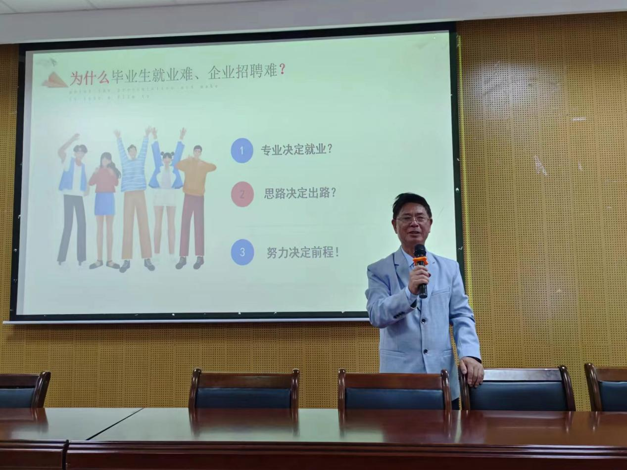 陈处以“专业与就业”为主题,就“为什么毕业生就业难,企业招聘难”这一话题,从“专业决定就业?”、“思路决定出路?”、“努力决定前程”等角度,结合自己在青年时期的就业经历与创业经历,强调“打破专业毕业生对就业的自我限制”、“打开自己的格局,就业海阔天空”,鼓励毕业生在求职过程中,不怕吃苦,发挥特长,严于修身,同时为同学们提供了就业的建议和指导。