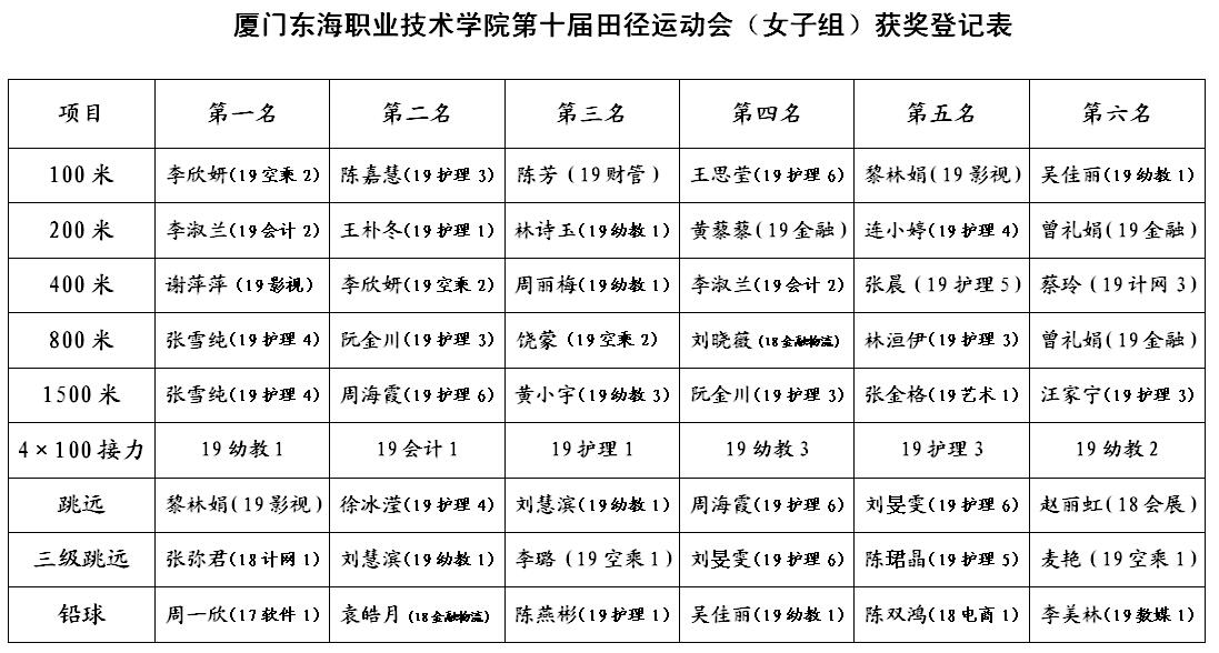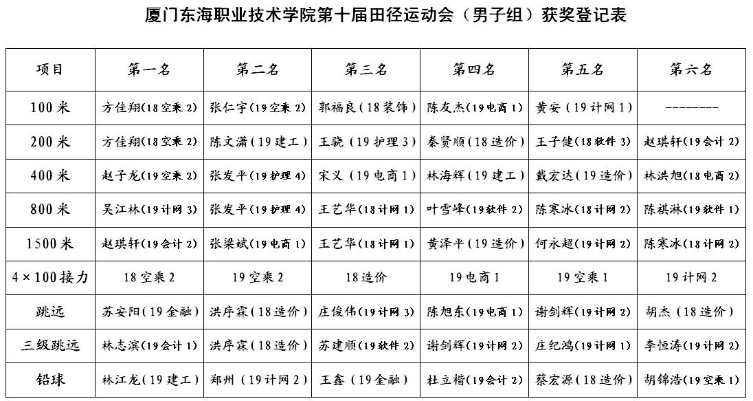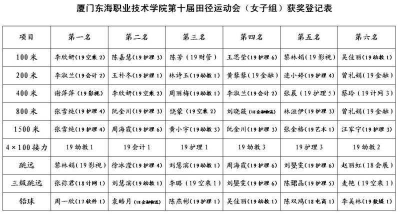 附:本届运动会获奖名单