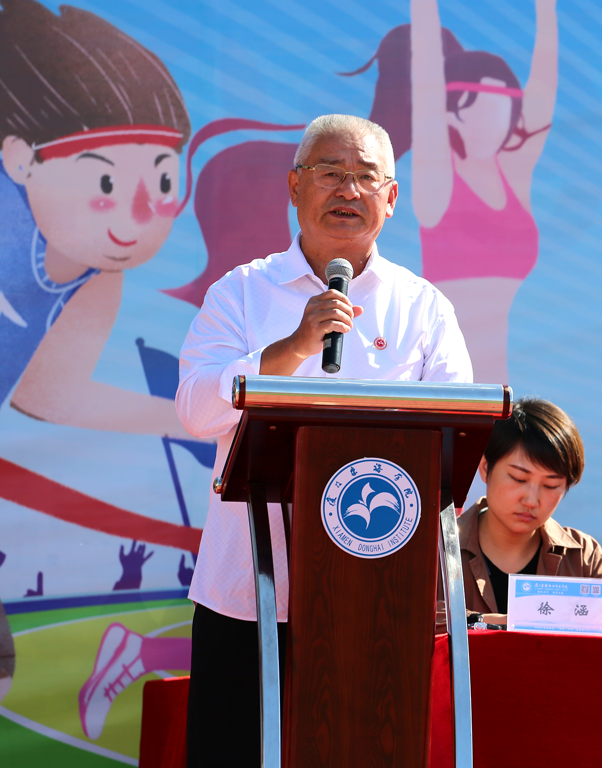 来永宝校长致开幕词。他在讲话中强调,每天锻炼1小时,健康工作40年,幸福生活一辈子。他希望大家充分享受体育运动的快乐,发挥“更高更快更强”的体育精神,团结协作,赛出水平,赛出风格!随后运动员代表方佳翔和教师代表陈胤钰分别进行表态发言。