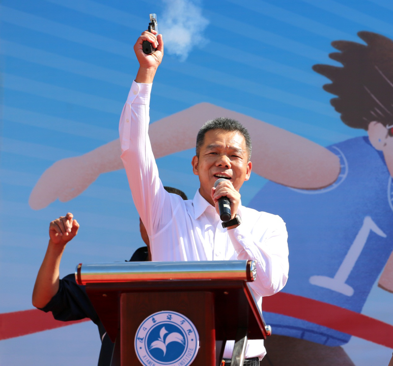 泉舜集团吴泉水董事长在开幕式上发表重要讲话。他表示,精彩人生的成就不仅要有干净的灵魂,还要有强健的体魄。运动会的召开是积极贯彻习近平总书记“健康中国”理念,进一步弘扬体育竞技精神的体现。希望全体师生践行“海纳百川、会拼敢赢”的精神,勇于拼搏,奋发有为。