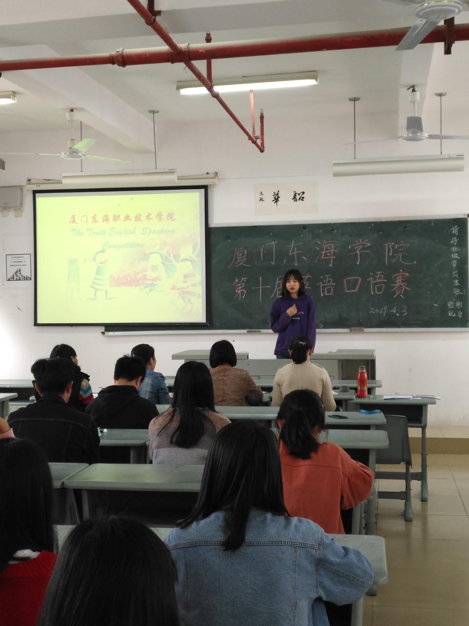 添加时间:2019-04-04为了丰富我院学生的校园生活,提高学生们的英语水平,完善学生的第二课堂活动,激发学生学习英语的兴趣,促进学生学习英语的积极性,活跃校园英语学习气氛,提高我院学生英语口语的表达能力和组织能力,也为2020年福建省高职高专职业技能大赛英语口语赛做好选拔准备。公教部英语教研室按照计划于2019年4月3日周三下午2:00(第5周)开展了厦门东海学院第十届英语口语大赛。