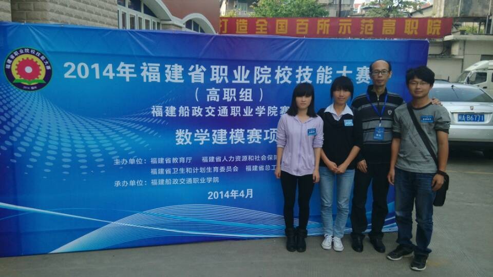 2014年4月28日,我院公共教学部组织数学建模小组参加2014年福建省高职院校技能竞赛获优秀奖。