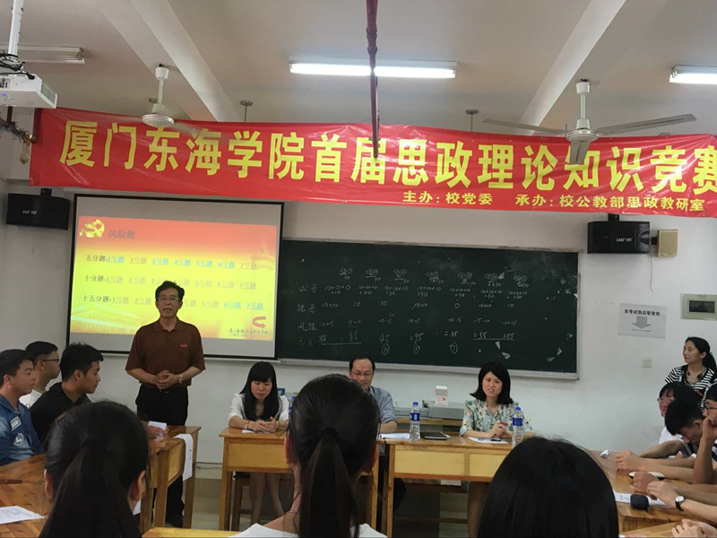 5月10日下午2点,新葡的京官网首届大学生思政理论知识竞赛决赛在6-605教室火热开赛。活动由校党委主办,公共教学部思政教研室承办,校党委黄平南书记、崔筱力校长助理、教务处唐清辉处长、校党政办吕明利副主任出席比赛现场。黄书记代表学院对全体组委会成员和参赛学生的付出表示肯定与慰问。