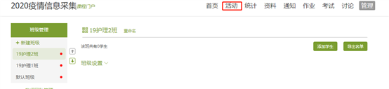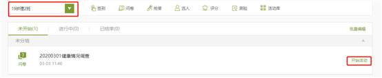 5、保存完毕后点击【开始活动】发放问卷调查,如果有多个班级注意班级的选择