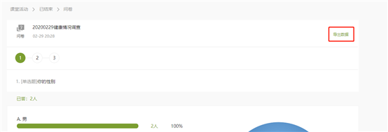 6、问卷调查结束后可以在已结束选项进行数据的导出