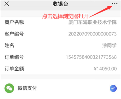 (3)线上缴费平台支持微信、支付宝、银行卡进行缴费,由于微信平台限制,如需使用支付宝缴费请按以下提示操作。