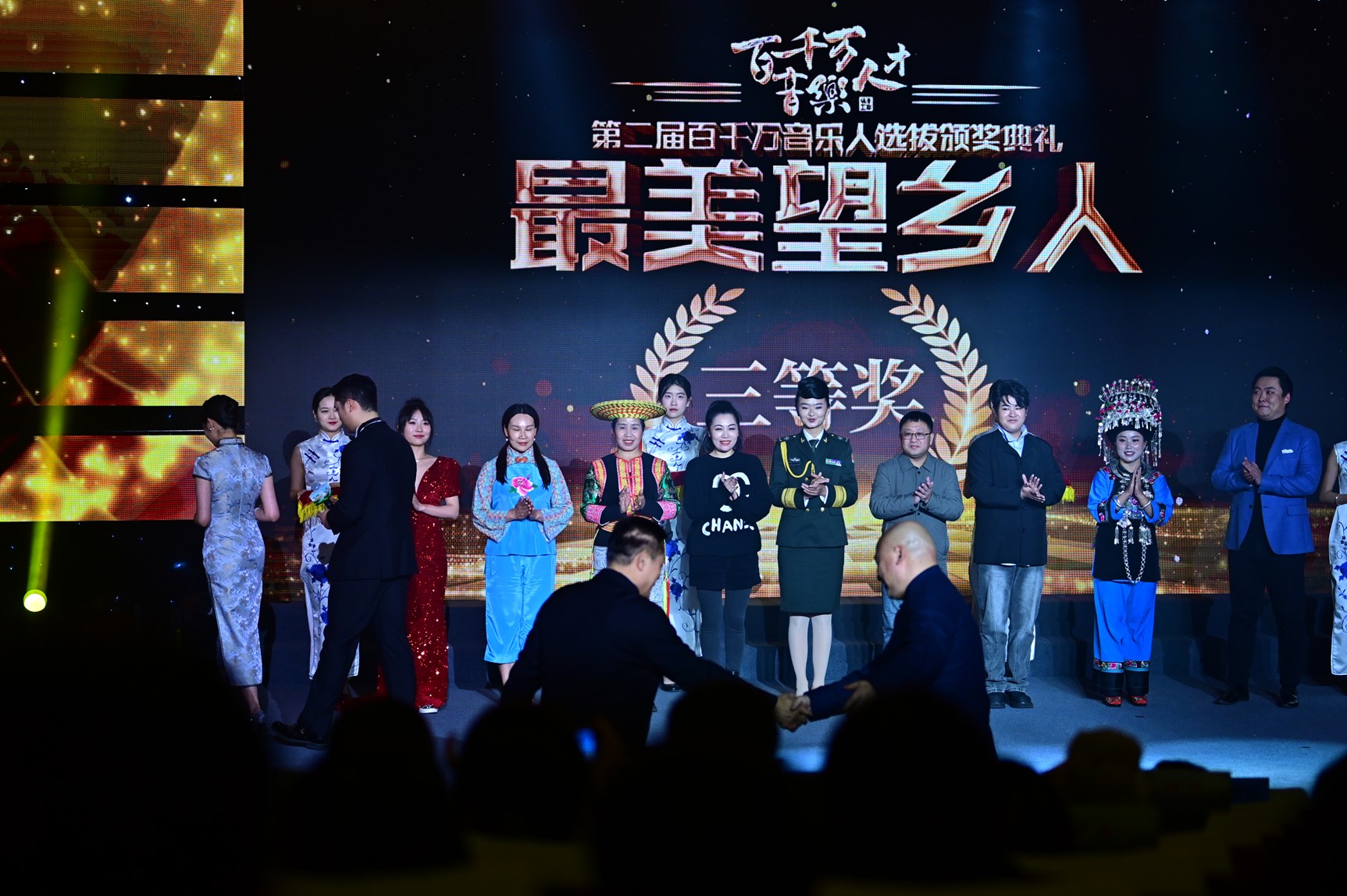 2023年12月11日晚,由戴玉强美育基金发起的第二届"百千万音乐人才培养"决赛赛在北京落下帷幕。我院音表专业教师吴轶笛凭借其原创歌曲《梦里乡愁》荣获比赛三等奖。颁奖典礼上,由我院林玲玲老师演唱了该曲并代为领奖。