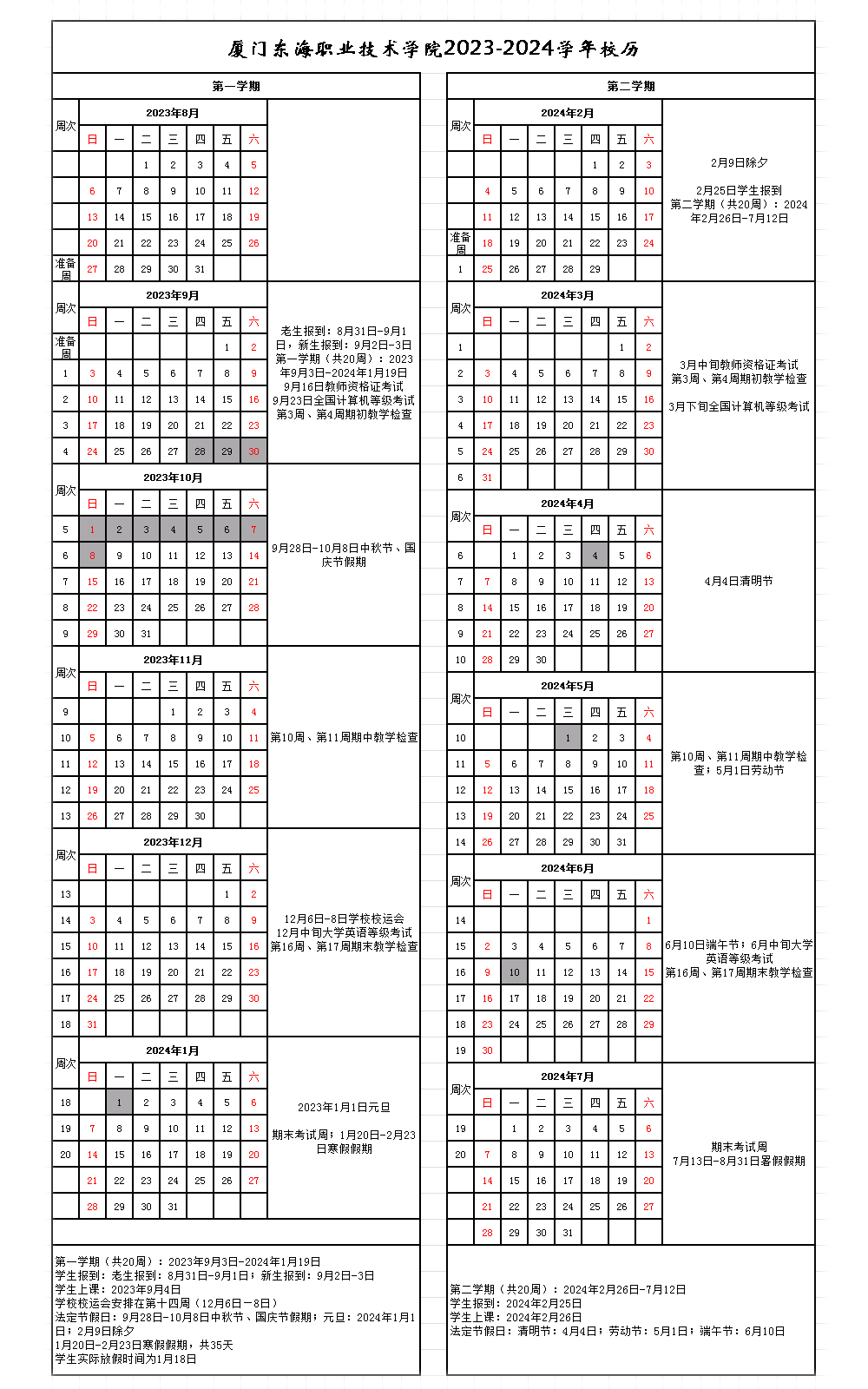 新葡的京集团350vip8888首页2023-2024学年校历