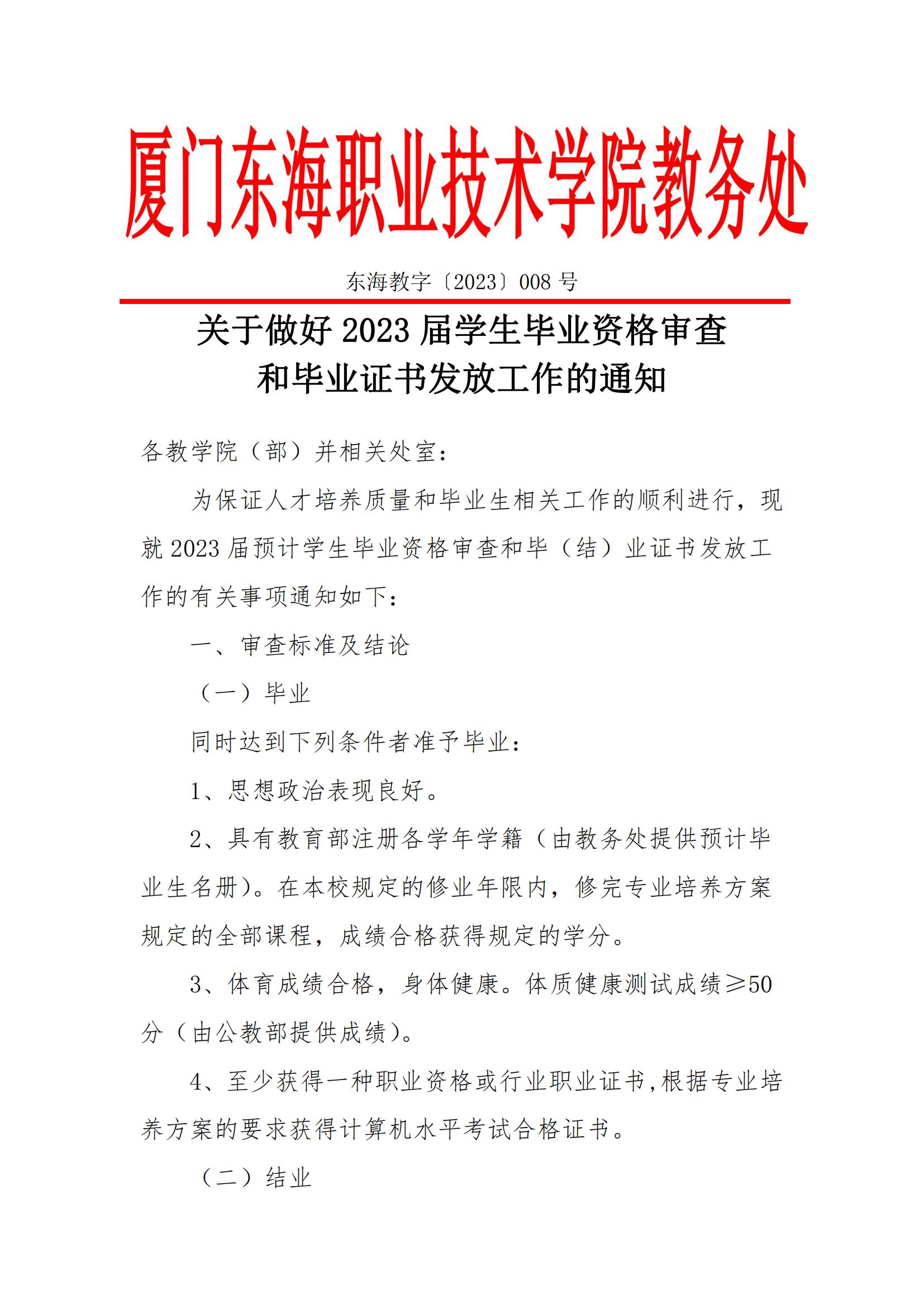 关于做好2023届学生毕业资格审查和毕业证书发放工作的通知