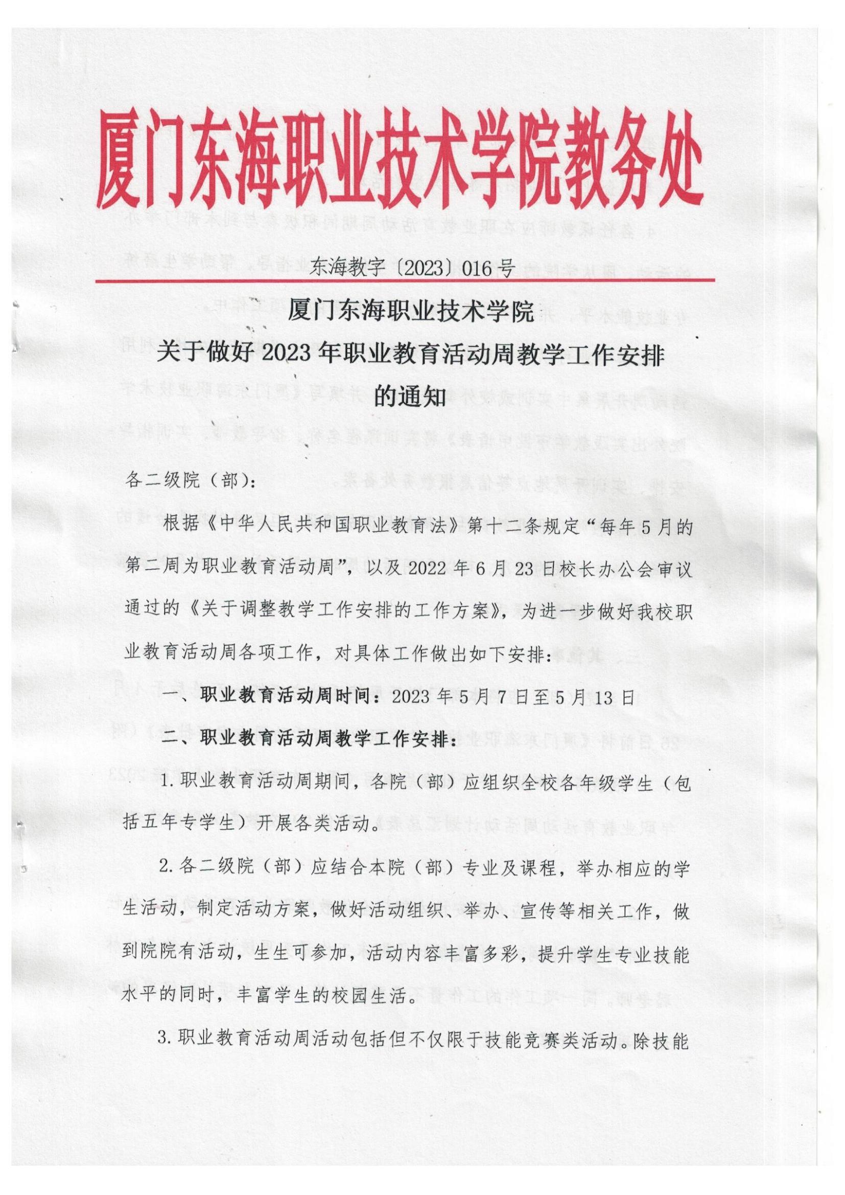 关于做好2023年职业教育活动周教学工作安排的通知