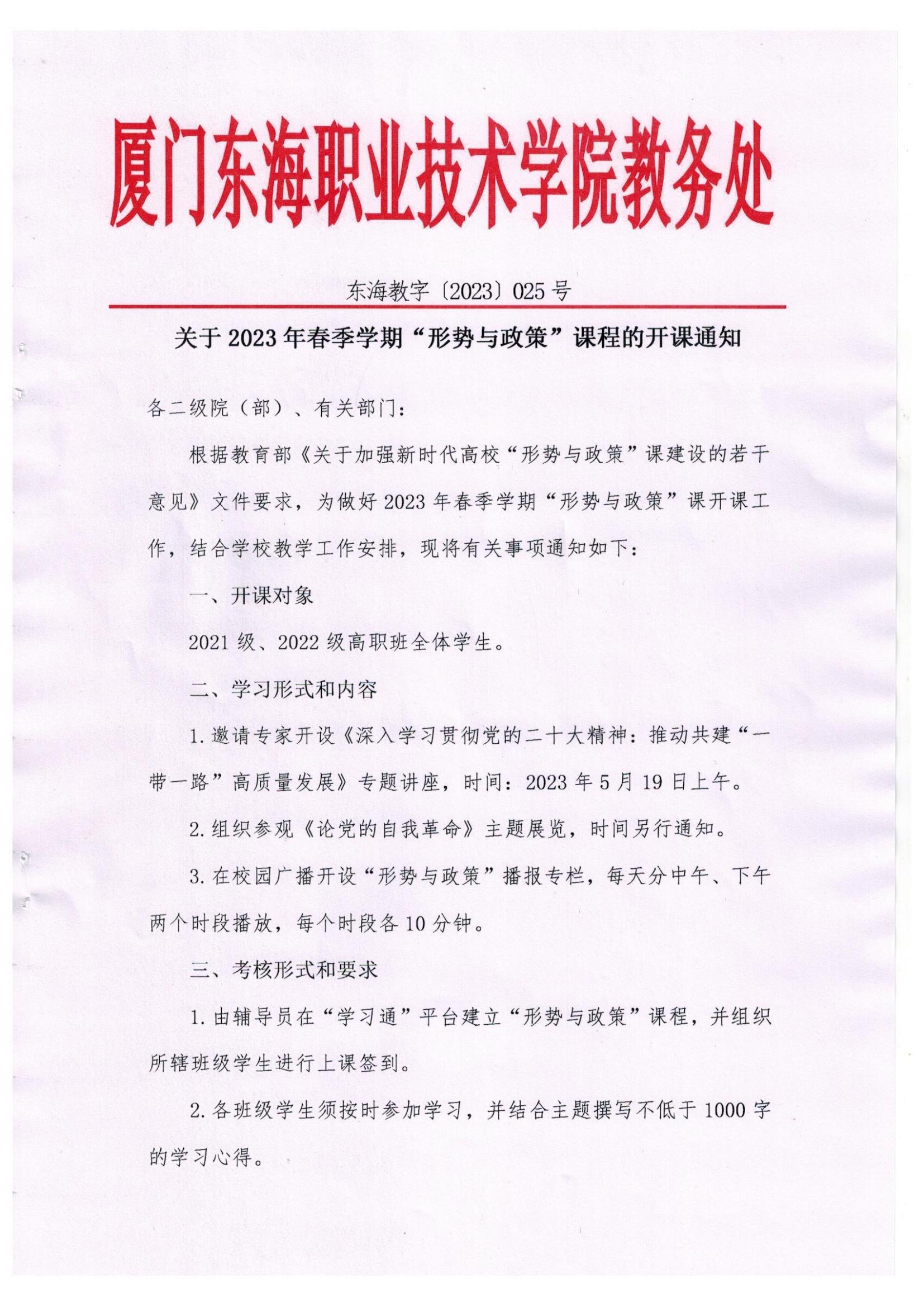 关于2023年春季学期“形势与政策”课程的开课通知