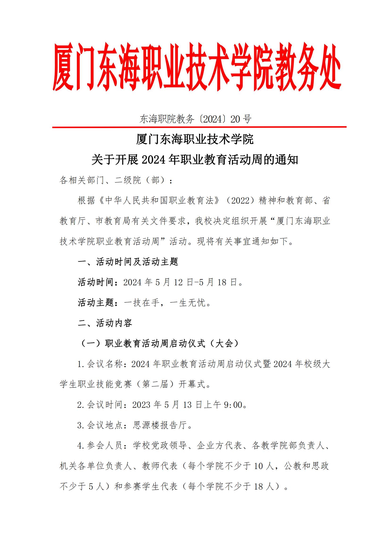 新葡的京集团350vip8888首页 关于开展 2024 年职业教育活动周的通知