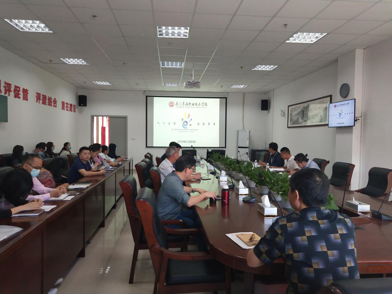 11月8日至14日是2020年全国职业教育活动周。本次活动周的主题是“人人出彩,技能强国”。为大力弘扬劳动光荣、技能宝贵、创造伟大的时代风尚,进一步营造全社会关心支持职业教育的良好氛围,新葡的京官网于2020年11月6日在思源楼一楼会议室开展职业教育活动周会议。全体教务处人员、全体质管办人员、信息与实训管理中心、各二级院正副院长、院长助理及教学秘书参加了会议。