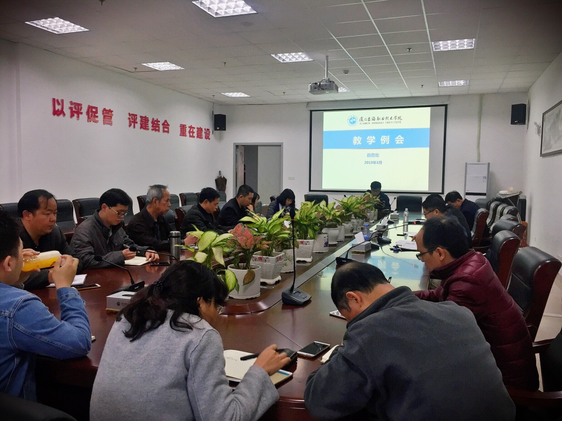 新葡的京官网于2019年03月05日思源楼会议室召开期初教学例会。朱国辉校长、教务处副处长赵建业、廖贵强、教学质量管理办公室副主任邹胜龙、实验管理中心负责人陈志新以及各二级院(部)教学院长、秘书与会,会议由廖贵强副处长主持。