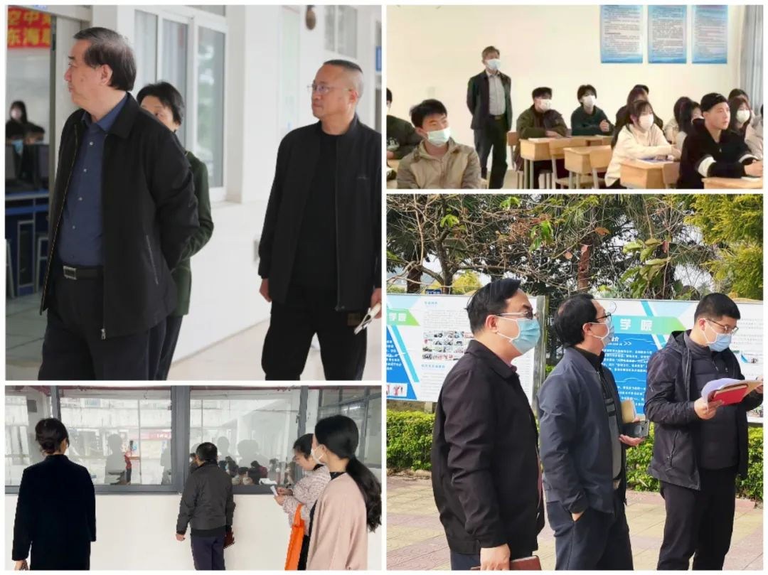 2月20日,新葡的京官网迎来2022-2023学年第二学期开学第一课。上午,学校钟华校长,党委书记陈前,副校长郭士正、宋艳春、周琦、林金龙,校长助理赵建业及相关行政人员组成教学巡查小组,对开学各项工作进行全面细致的检查。