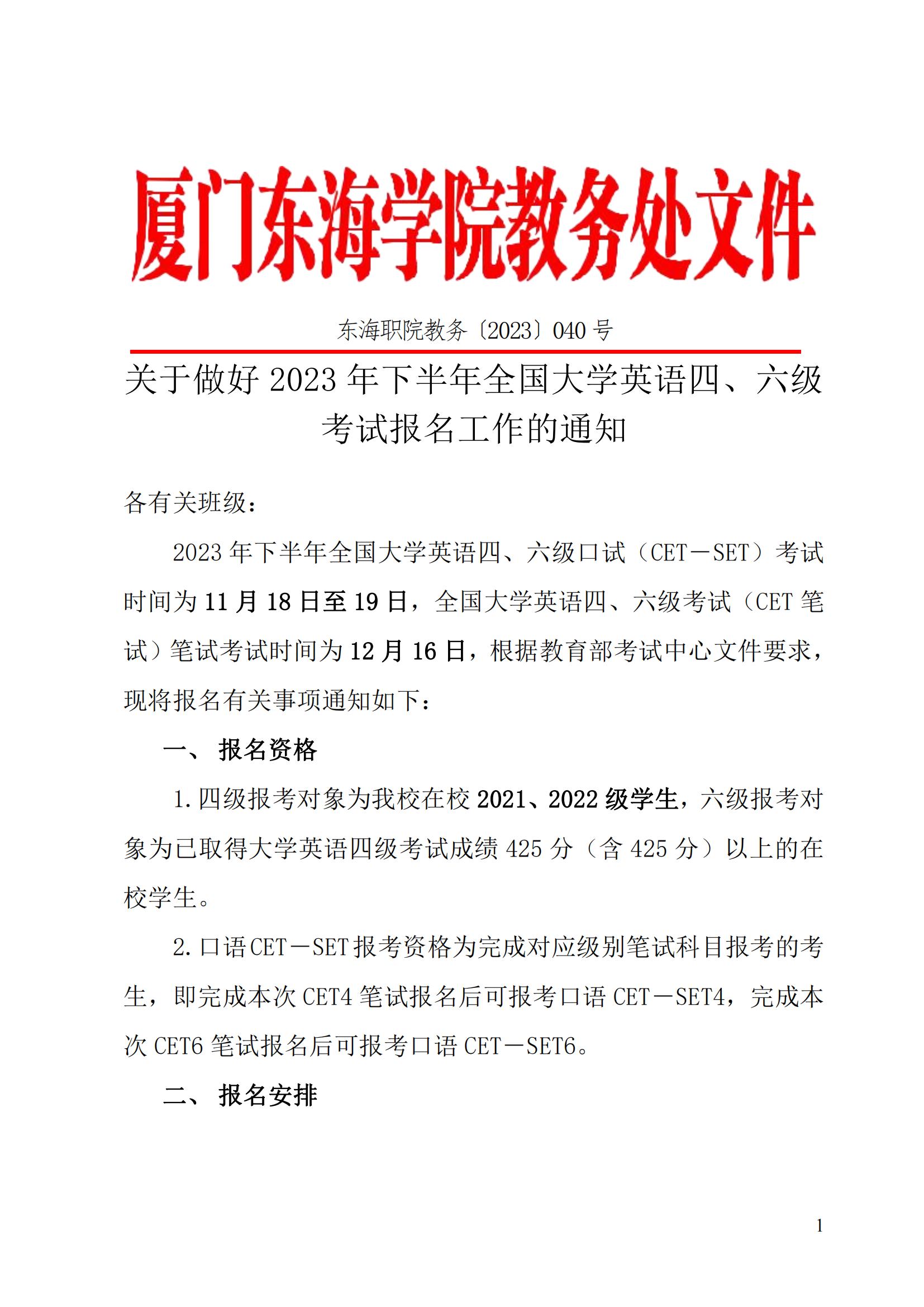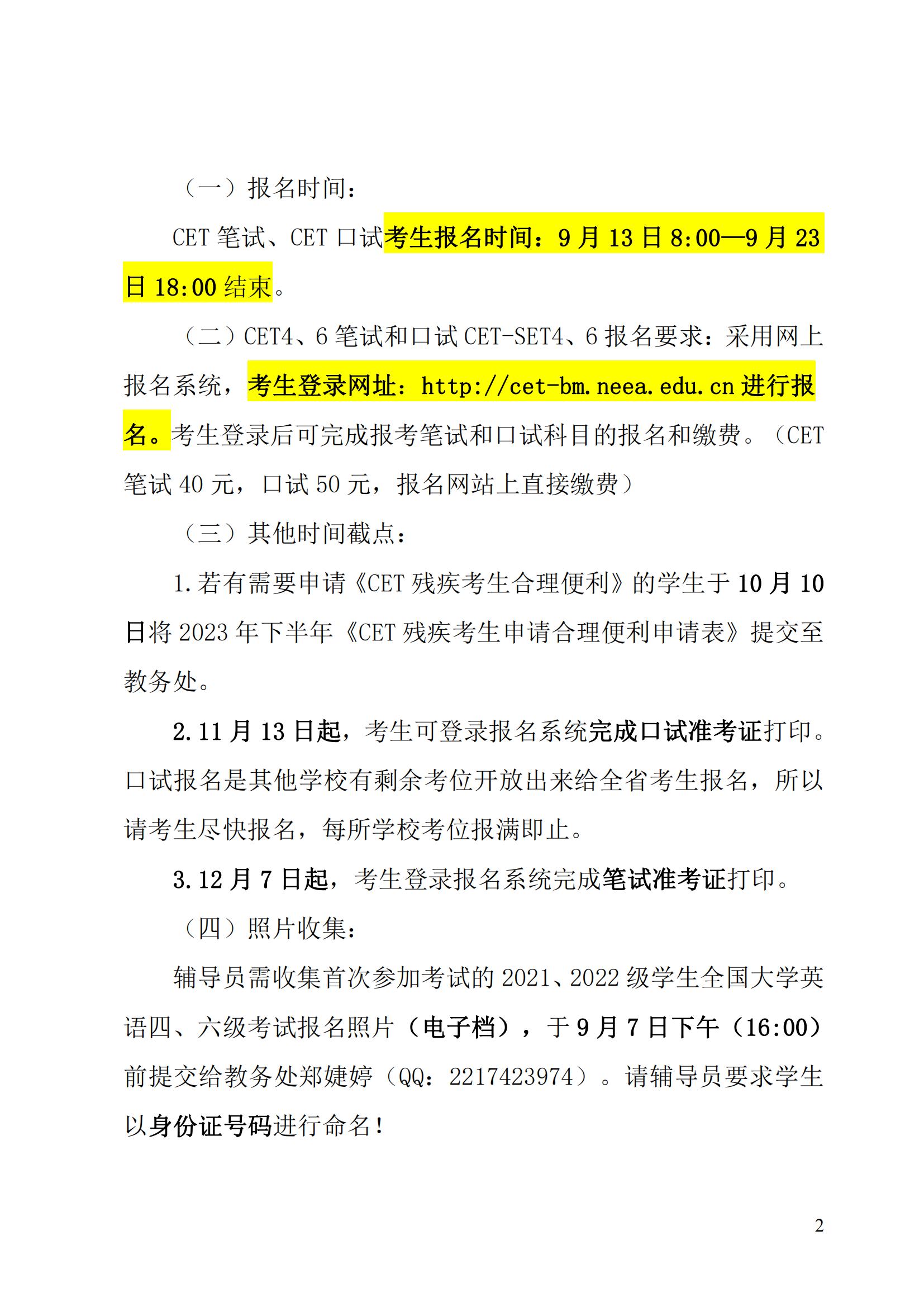 关于2023年上半年全国大学英语四、六级考试的通知