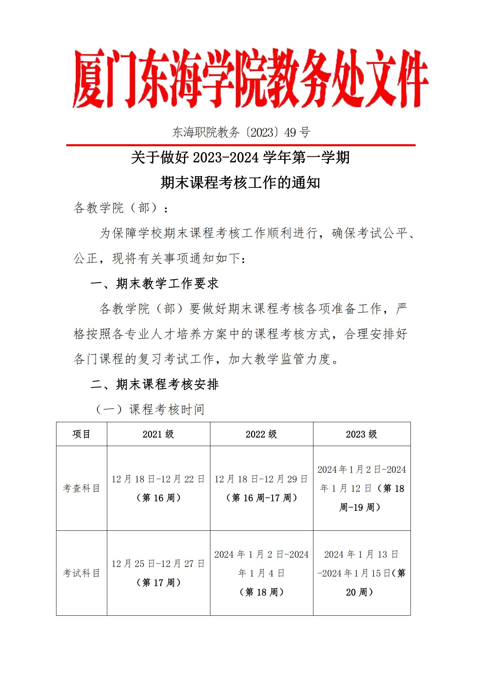东海职院教务〔2023〕49号-2023-2024第一学年期末考试通知及相关文件
