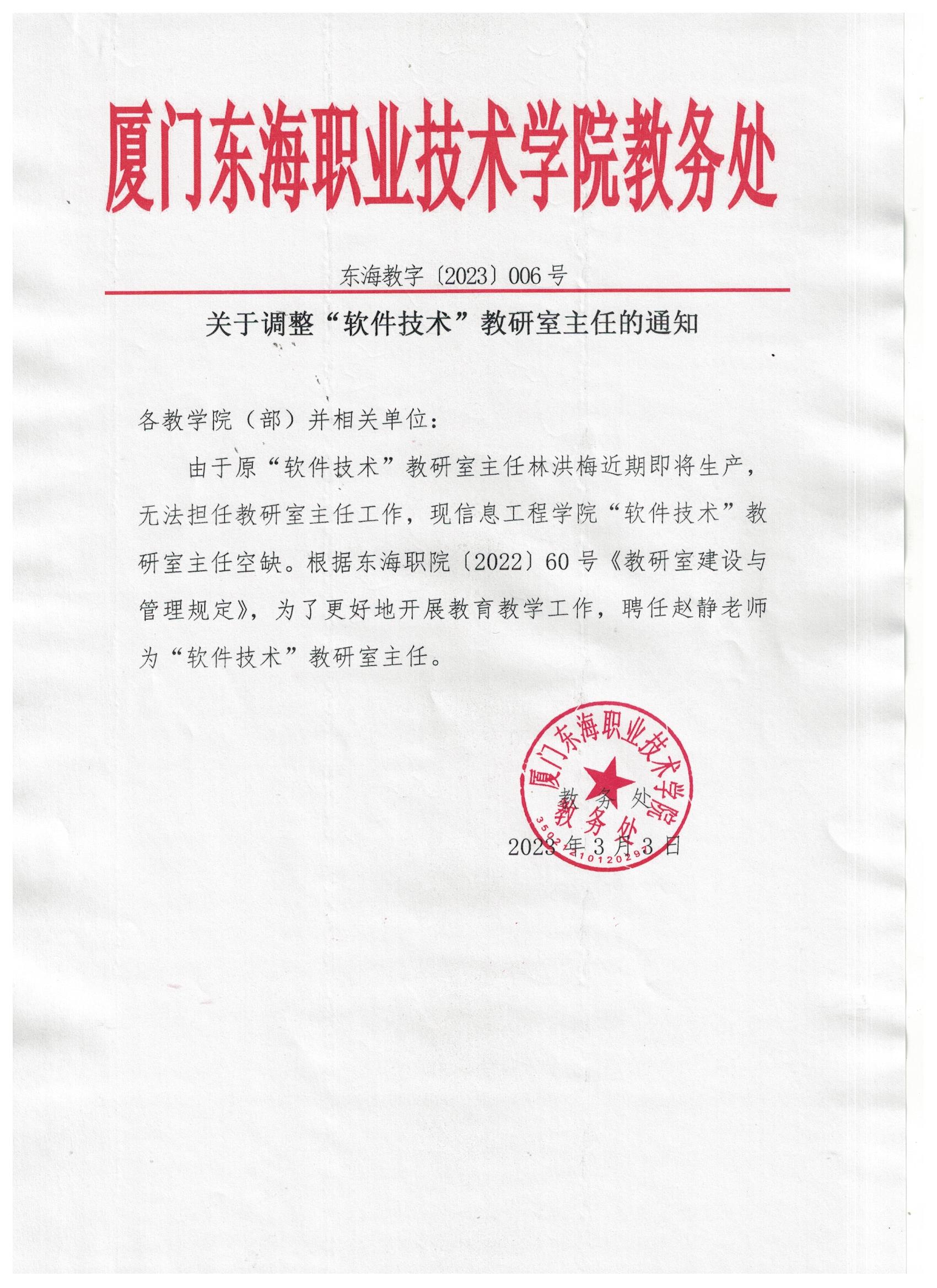 东海教字〔2023〕6号 关于调整“软件技术”教研室主任的通知