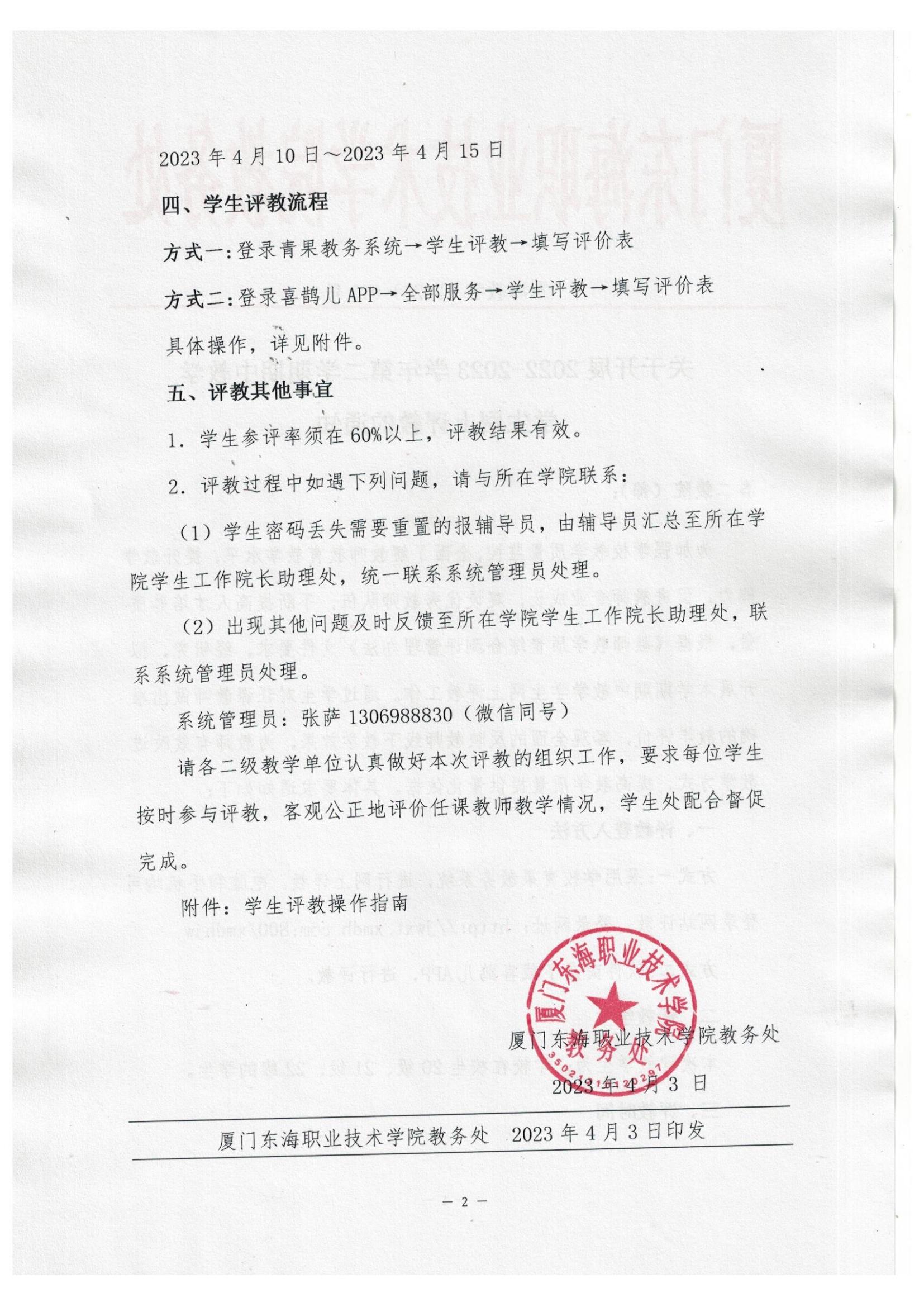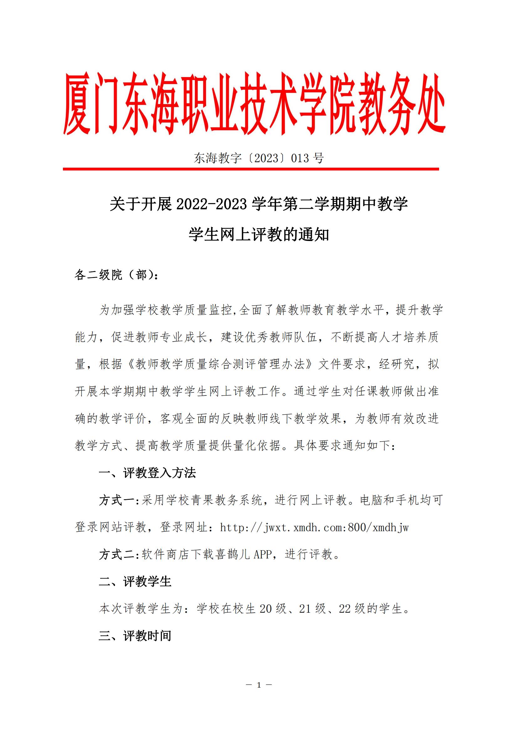 东海教字〔2023〕13号 关于开展2022-2023学年第二学期期中教学学生网上评教的通知