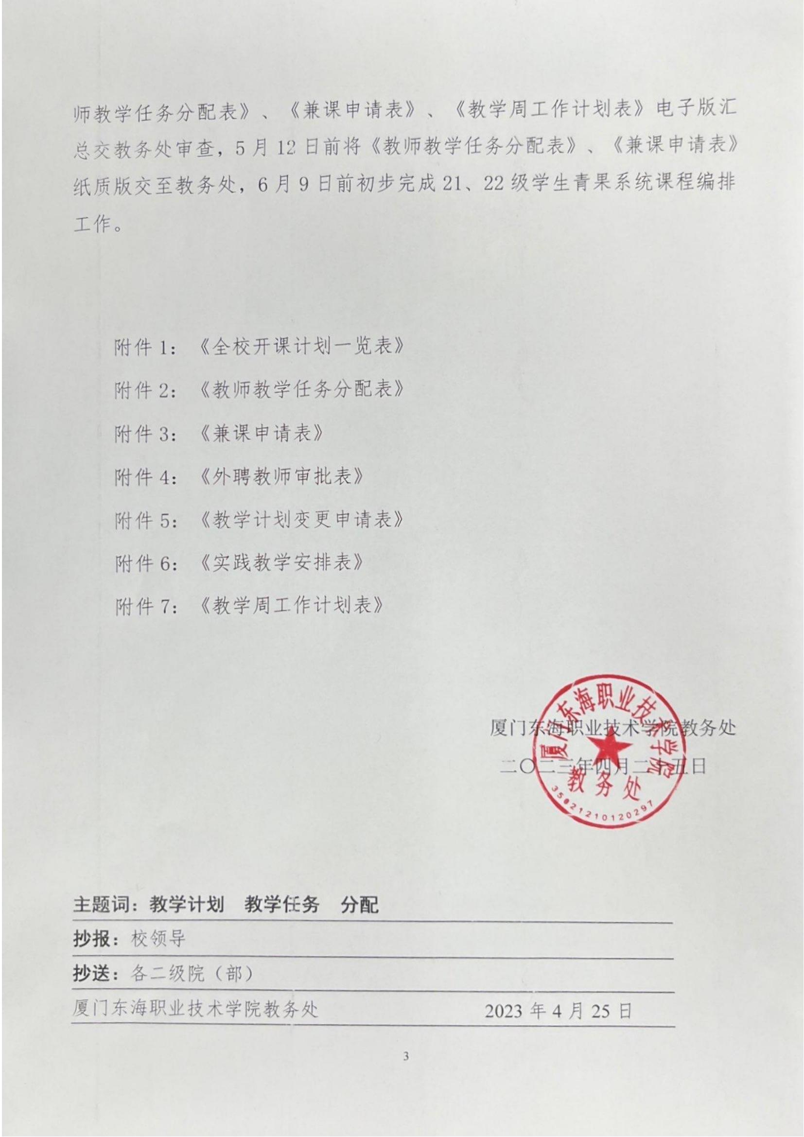 东海教字〔2023〕17号 关于做好2023-2024学年第一学期教学任务分配的通知