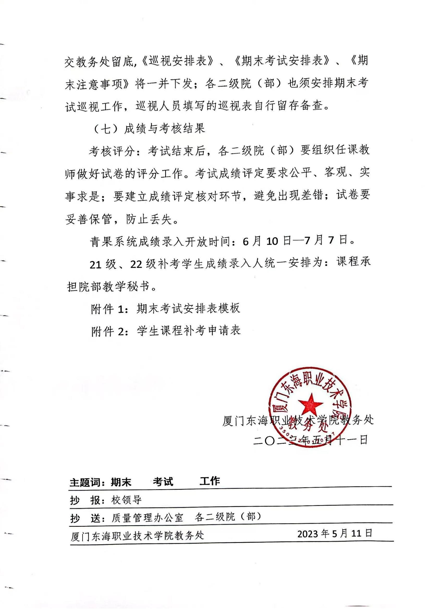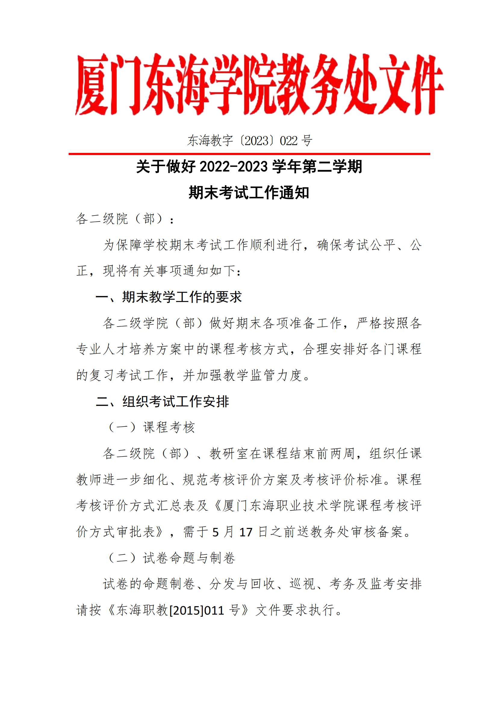 东海教字〔2023〕22号 关于做好2022-2023学年第二学期期末考试工作通知