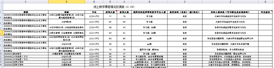 所有任课教师每天按教务处通知,认真填写《线上教学课程情况反馈表》,各教学秘书负责汇总.并于当天晚上20点前报送至教务处。