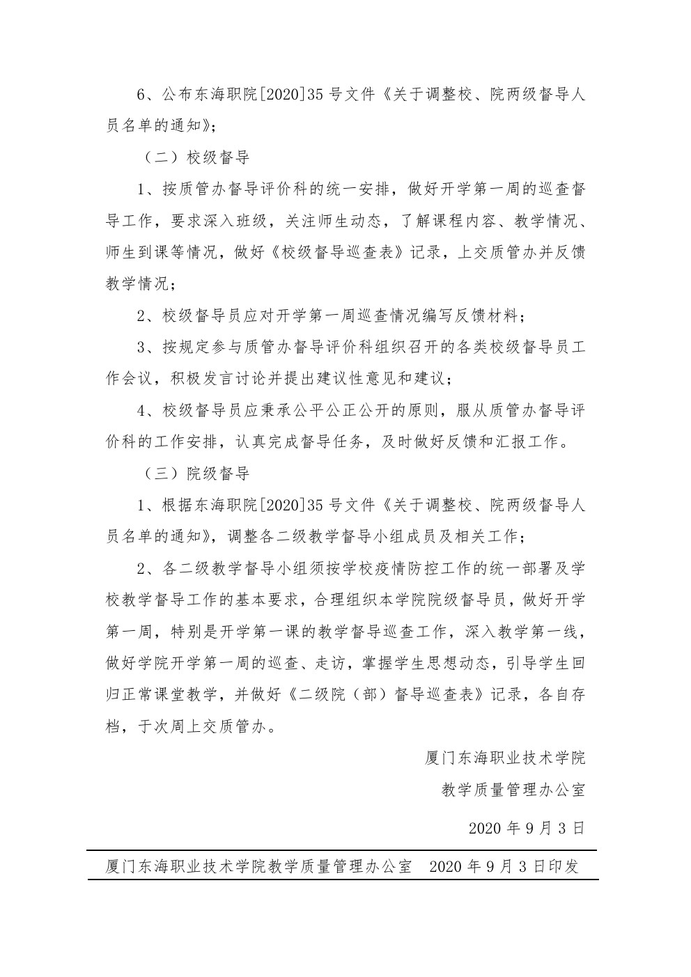 东海职院质管〔2020〕8号 2020-2021学年第一学期学校督导工作基本要求及工作任务