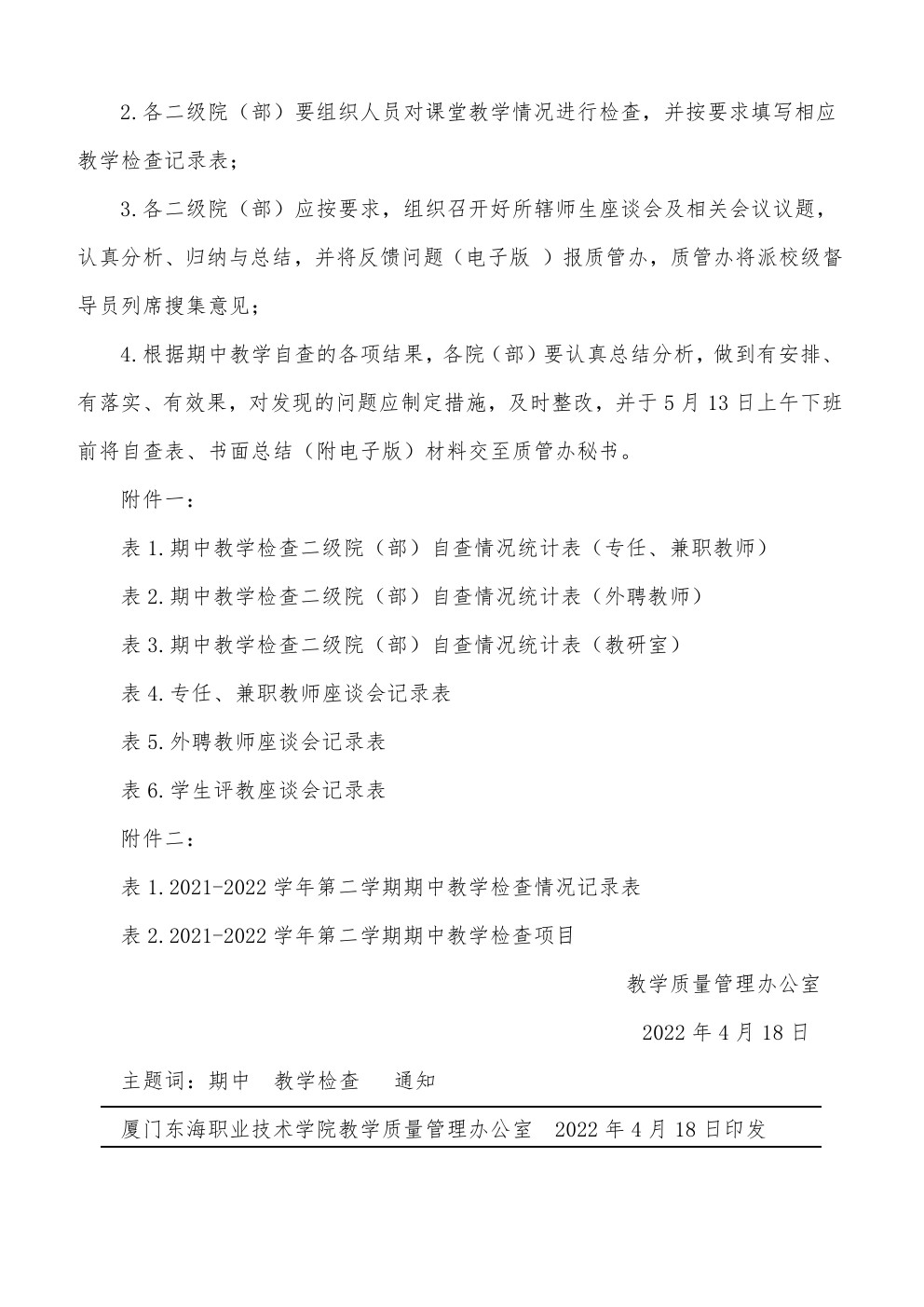 东海职院质管〔2022〕5号 开展2021-2022学年二学期期中教学检查的通知
