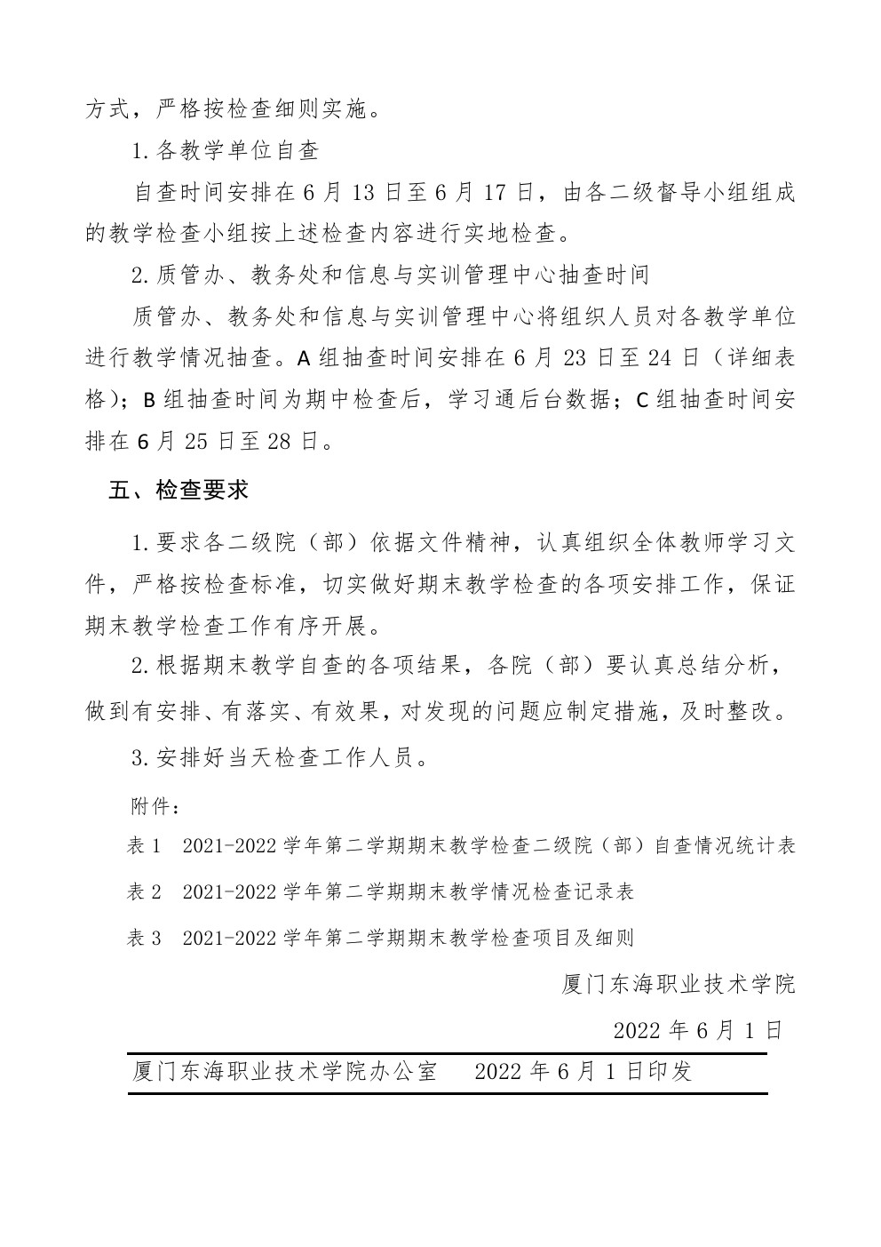 东海职院质管〔2022〕8号 关于开展2021-2022学年二学期期末教学检查通知