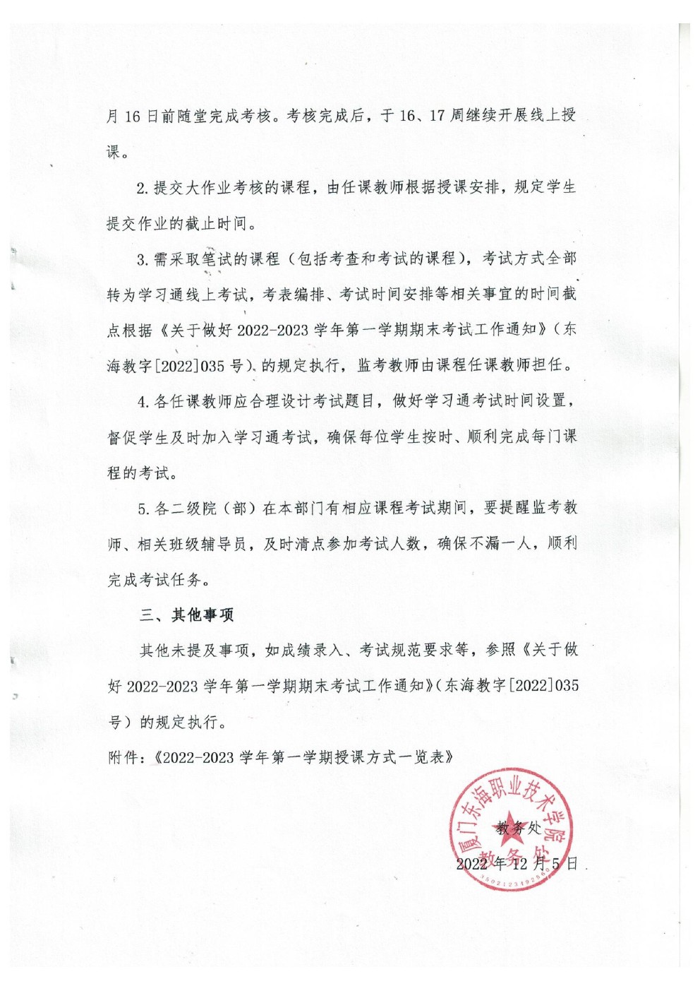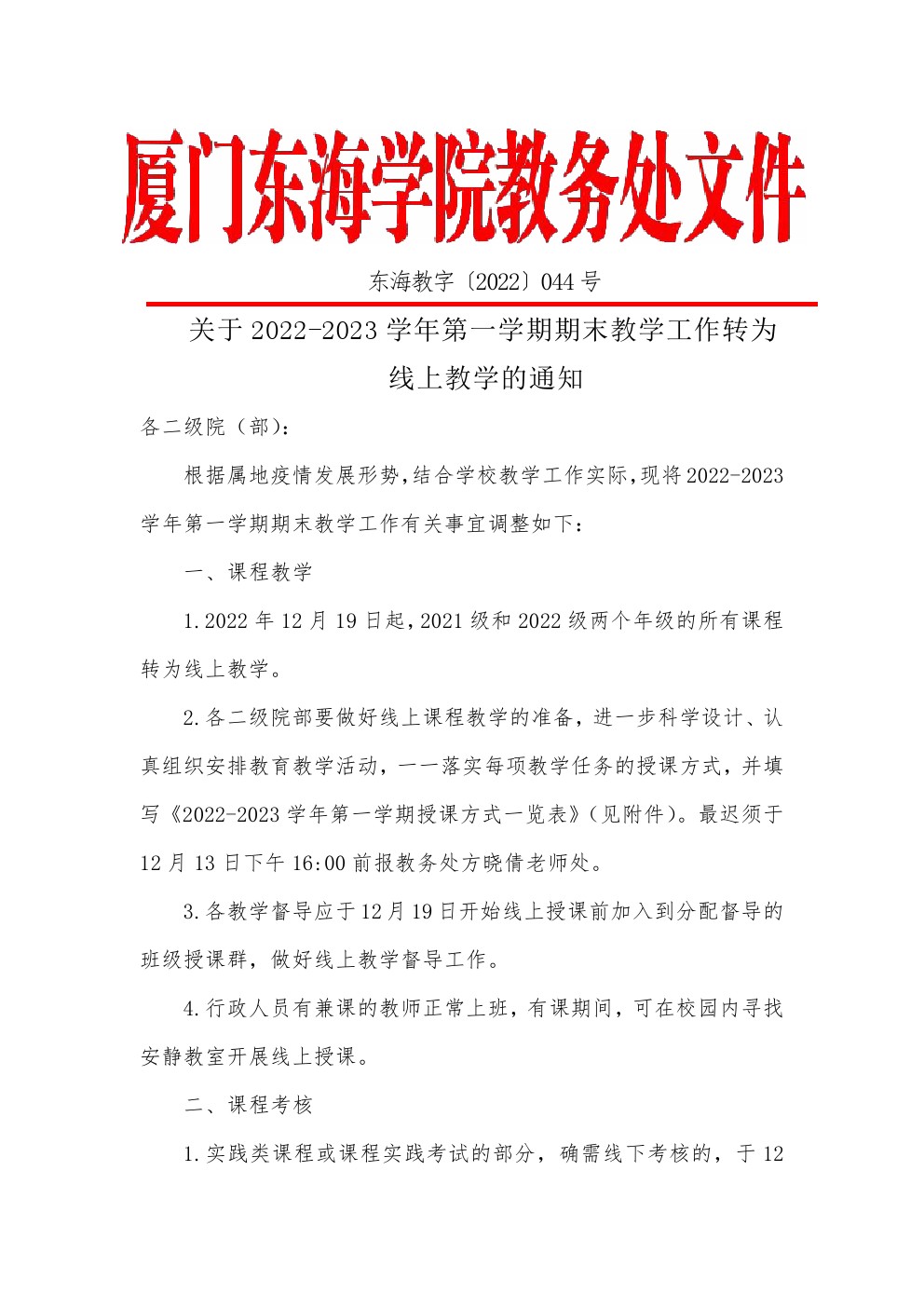 东海教字〔2022〕44号 关于2022-2023学年第一学期期末教学工作转为线上的通知