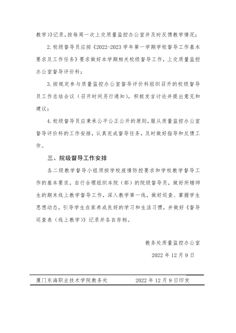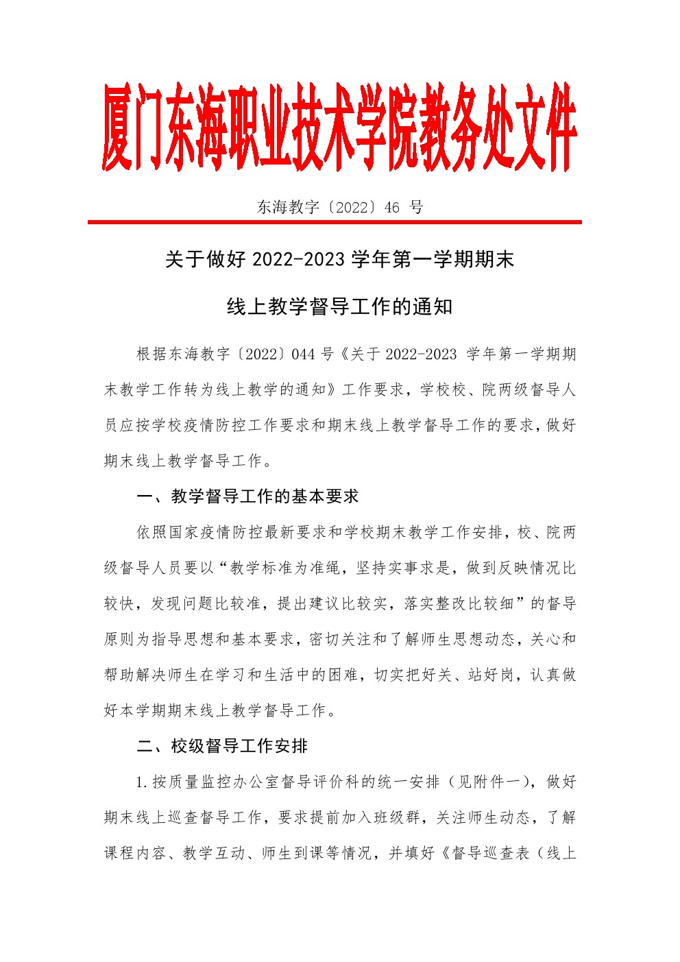 东海教字〔2022〕46号 关于做好2022-2023学年第一学期期末线上教学督导工作的通知