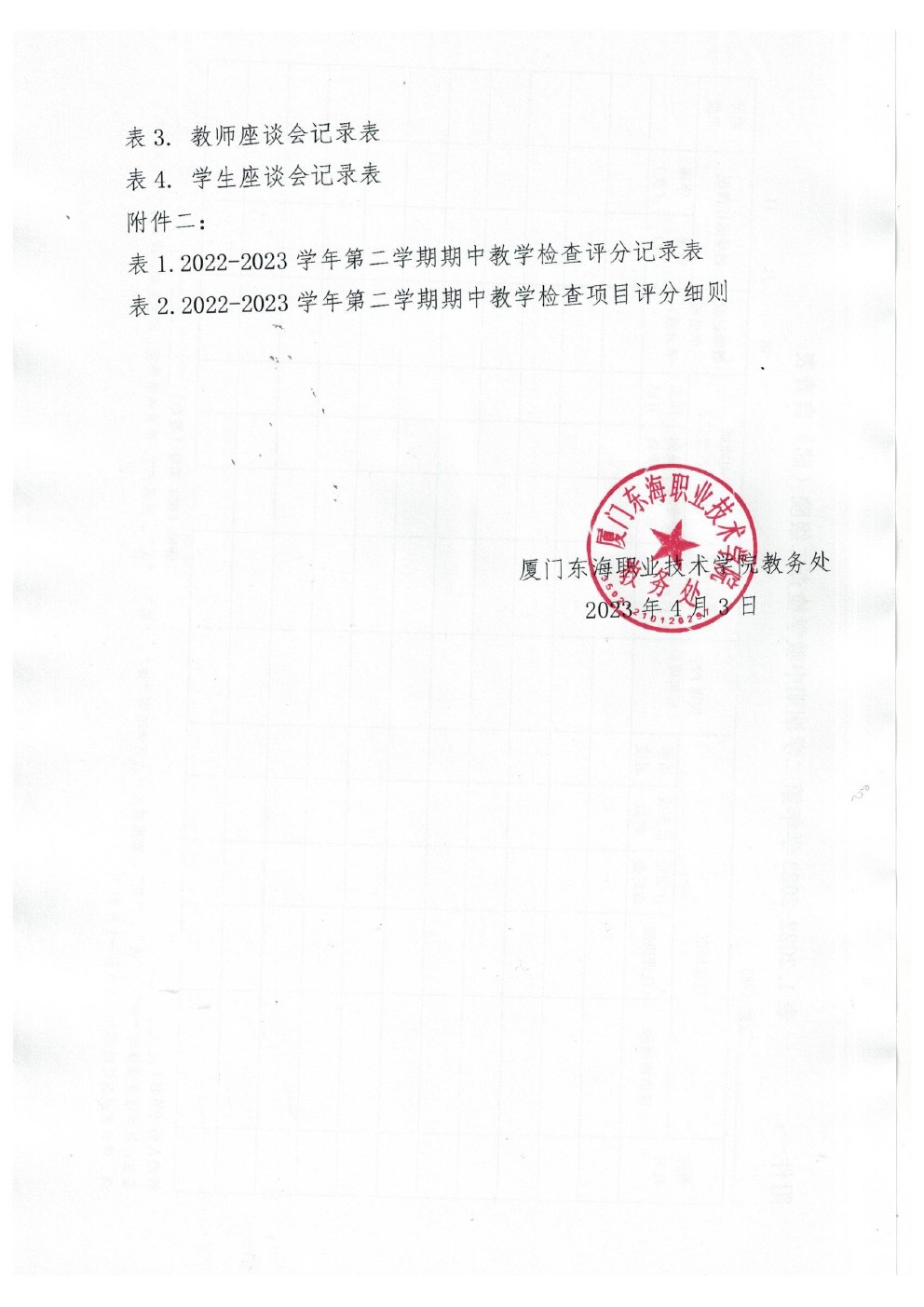东海教字〔2023〕014号 关于开展2022-2023学年二学期期中教学检查的通知