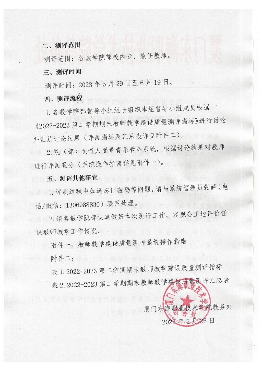 东海教字〔2023〕029号 关于开展2022-2023学年第二期期末教师教学建设质量测评的通知