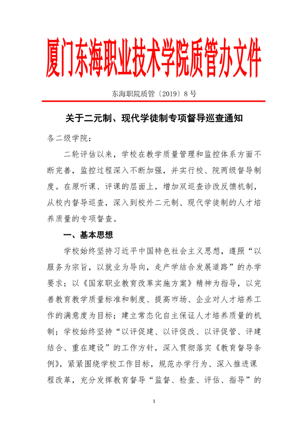 东海职院质管[2019]8号——二元制、现代学徒制督导巡查制度
